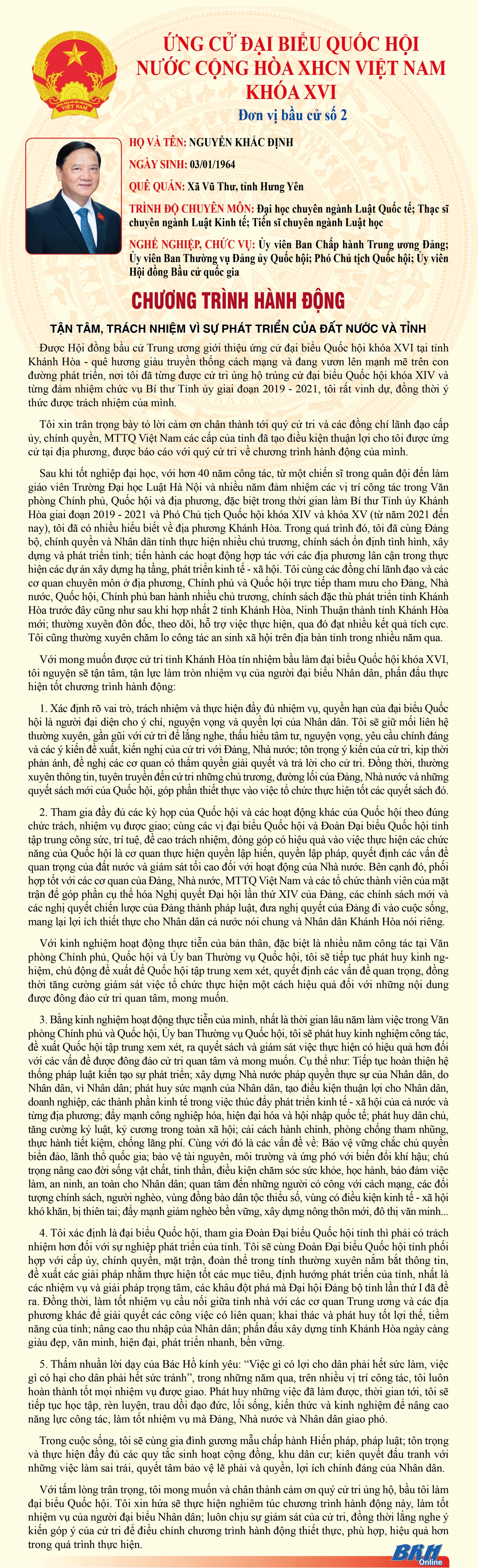 - [02/03/2026] Chương trình hành động của các ứng cử viên đại biểu Quốc hội khóa XVI tại Khánh Hòa - Đơn vị Bầu cử số 1